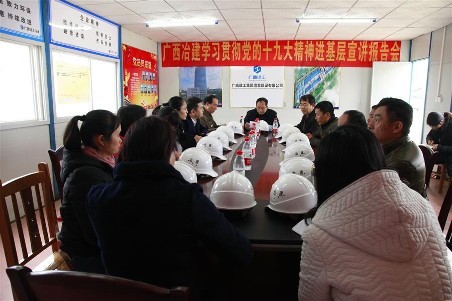 1月17日,公司黨委書記、副總經(jīng)理張濟(jì)璜,組織人事處處長(zhǎng)梁金峰到由工業(yè)設(shè)備安裝工程公司承建的廣西玲瓏輪胎200萬(wàn)套全鋼主車間工程項(xiàng)目部開展學(xué)習(xí)貫徹黨的十九大精神進(jìn)基層宣講報(bào)告會(huì)。
