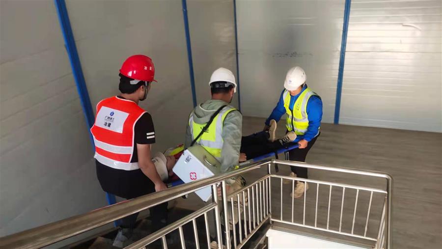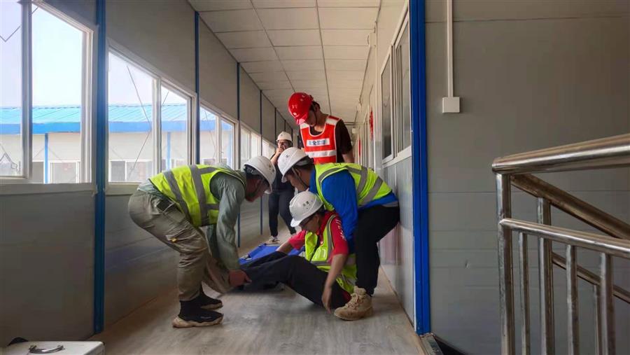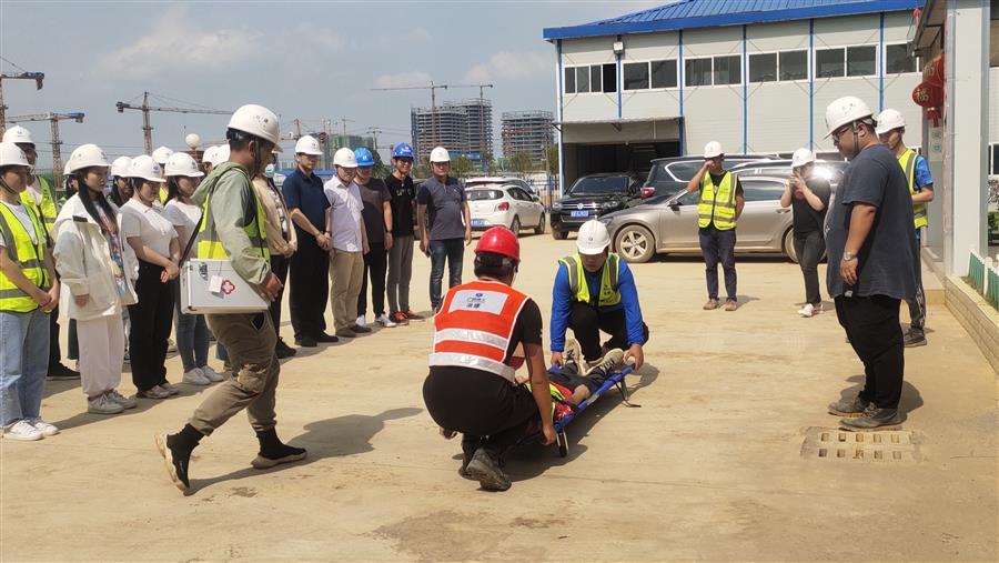 活動過程中,分公司經(jīng)理在項目部會議室向大家講解消防、觸電安全常識、應(yīng)急救援等相關(guān)知識點,并播放了相關(guān)教學(xué)視頻。項目安全總監(jiān)介紹了滅火器材的使用,并組織進(jìn)行實地滅火實物操作演習(xí)。分公司管理人員、項目管理人員和從業(yè)人員分別進(jìn)行了觸電應(yīng)急救援,火災(zāi)人員疏散,滅火器、消防水槍使用演練。