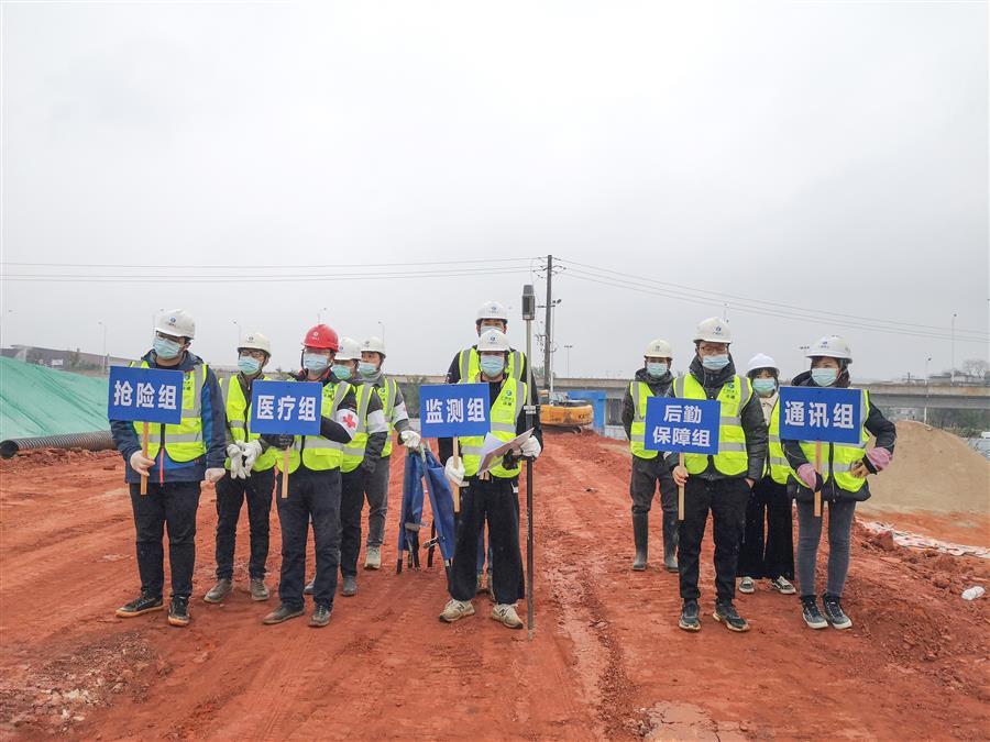 柳東片區(qū)在建市政項目、監(jiān)理單位等相關人員現(xiàn)場觀摩演練。
