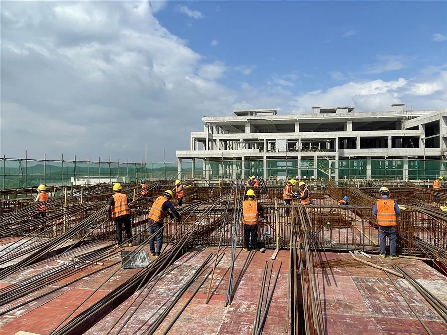 為了加快項(xiàng)目建設(shè),欽州超薄玻璃基板深加工項(xiàng)目部成立了項(xiàng)目推進(jìn)、安全生產(chǎn)監(jiān)督、疫情防控等工作組,分工明確、責(zé)任細(xì)化、統(tǒng)籌安排、倒排工期,確保各項(xiàng)工作有條不紊地進(jìn)行。目前,該項(xiàng)目變電站裝飾裝修收尾、機(jī)電安裝完成60%、室外工程施工完成50%;研發(fā)樓幕墻預(yù)埋板95%;動(dòng)力站冷卻塔基礎(chǔ)梁板鋼筋綁扎完成20%。