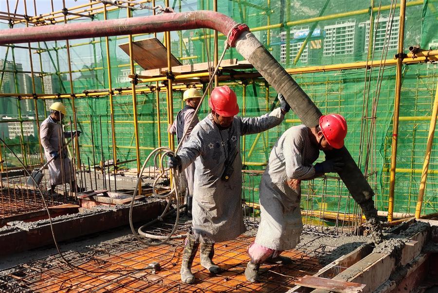 河池·澳門國際城四期工程位于河池市金城江區(qū)百旺路10號,總建筑面積13.76萬平方米,由5個單體建筑、地庫,以及配套設(shè)施工程等部分構(gòu)成。目前,3個單體建筑均已施工至結(jié)構(gòu)層8層梁板砼澆筑,項(xiàng)目累計完成總工程量的12.8%。