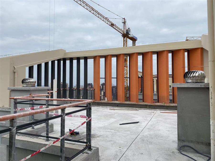 北投時代(二期)1#、2#、3#、5#、6#樓、北側(cè)大門及地下室工程項目總建筑面積為12.5萬㎡,地下2層,最大建筑高度為97.6m。目前,鋁合金門窗、陽臺欄桿安裝已完成工程量的80%,砌體工程、室內(nèi)抹灰、頂棚膩子、屋面構架涂料已完成,5#、6#樓標準層住戶交付樣板已完成。