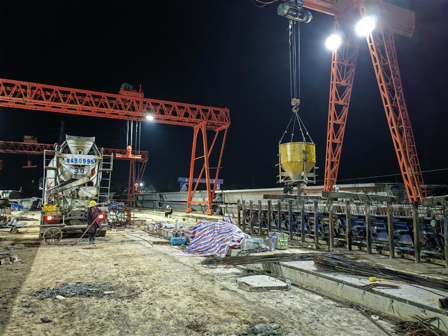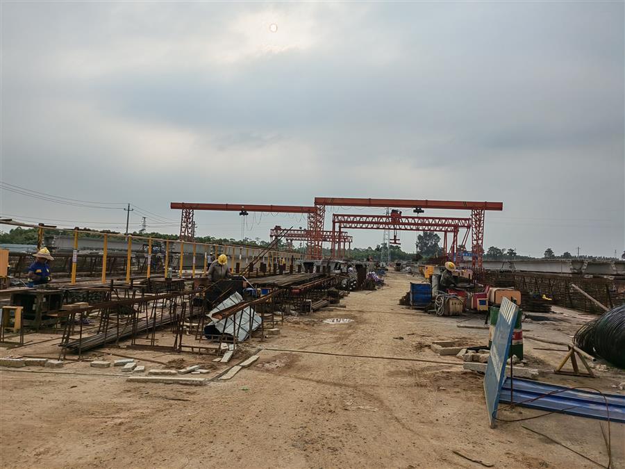 在施工現場,20多臺大型設備在不同時段連續(xù)配合作業(yè),運輸車輛有序進行運土填筑路基、材料進出場,100多名項目管理人員及工人分為預制梁場、樁基施工、橋梁下部結構等班組全線鋪開,在各個作業(yè)點上有條不紊地開展施工作業(yè)。