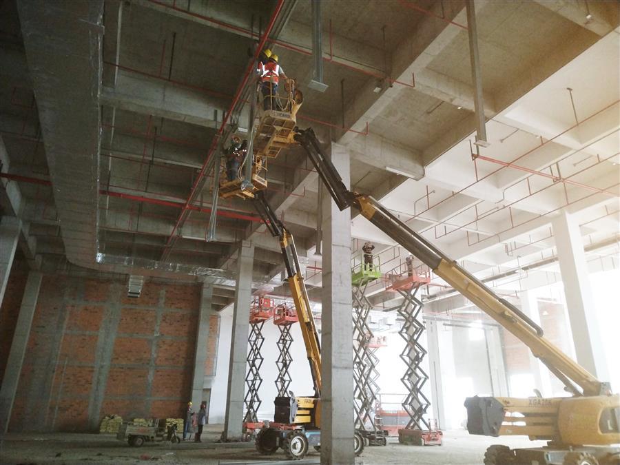 雨天巧干、晴天大干。項目部制定周密、科學的施工計劃,提前做好應急預案,每天根據(jù)天氣變化對工作時序、應對措施、安全保障等情況進行逐一落實,充分利用好天氣窗口期,因時制宜,在保障安全作業(yè)的前提下,推進穿插施工,盡一切可能搶抓進度,將攻堅再加速。目前,各樓棟水電消防完成90%,外墻膩子和外墻漆施工完成過半,窗玻璃安裝完成60%,內墻膩子完成80%;生產車間真石漆施工完成60%,49-61軸鋁板幕墻安裝完成15%,49-61軸二層金剛砂地坪完成30%,屋面卷材防水完成90%,屋面防水砼保護層完成60%;宿舍樓外墻裝飾線條完成80%,綜合樓外墻裝飾線條完成70%;室外管網(wǎng)路基施工完成40%。項目累計完成施工產值4.2億元,完成合同造價的82%。
