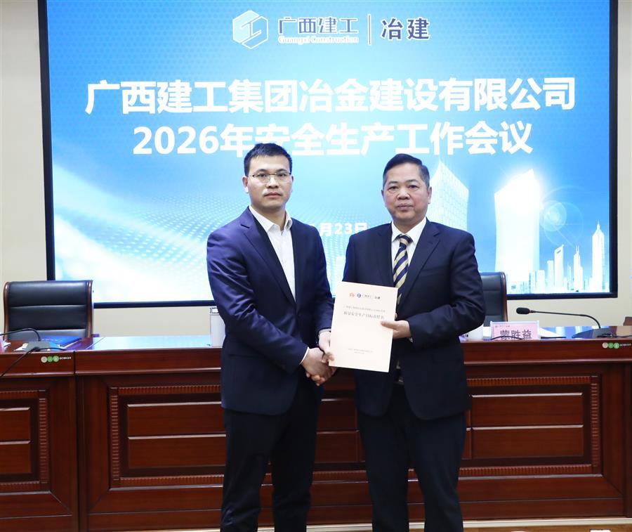 1月23日,冶建公司2026年安全生產(chǎn)工作會(huì)議在第二會(huì)議室召開(kāi)。會(huì)議深入貫徹習(xí)近平總書(shū)記關(guān)于安全生產(chǎn)的重要論述和指示批示精神,全面貫徹落實(shí)中央、自治區(qū)安全生產(chǎn)會(huì)議及集團(tuán)公司年度安全生產(chǎn)工作會(huì)議精神,總結(jié)公司2025年安全生產(chǎn)工作,分析新形勢(shì)下安全生產(chǎn)面臨的突出問(wèn)題,部署2026年安全生產(chǎn)工作。公司董事長(zhǎng)、黨委書(shū)記覃振華出席并講話,公司總經(jīng)理、黨委副書(shū)記蒙勝益作安全生產(chǎn)工作報(bào)告,領(lǐng)導(dǎo)班子成員賴海標(biāo)、廖立波、阮仁勝、葉益華參加。公司副總經(jīng)理、安全總監(jiān)韋克雪主持會(huì)議。