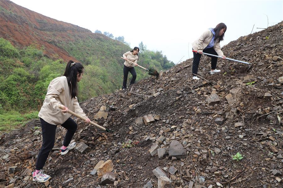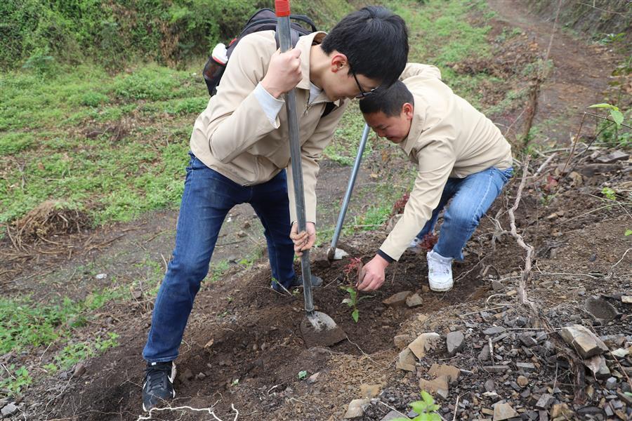 活動(dòng)現(xiàn)場,青年志愿者分組分片區(qū)開展植樹活動(dòng)。各小組團(tuán)員青年分工協(xié)作、默契配合,鏟土挖坑、立苗填土,個(gè)個(gè)熱情高漲、干勁十足,活動(dòng)現(xiàn)場氣氛熱烈。經(jīng)過大家熱火朝天的忙碌,一排排新種樹苗有序“落根”,山坡上煥發(fā)出盎然生機(jī)。