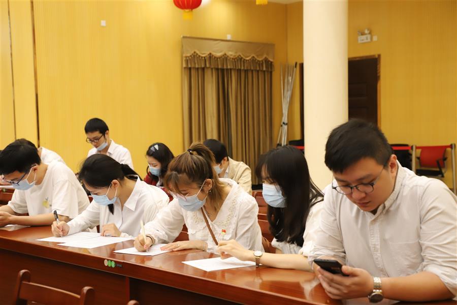 參加獻(xiàn)血的員工正在填寫(xiě)表格