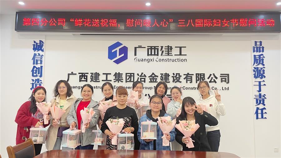 3月8日,冶建公司第四分公司開展“鮮花送巾幗 慰問暖人心”活動,為女員工送上真摯的節(jié)日祝福和親切的慰問,并為每一位女員工送上精美禮品和代表熱情、溫馨、感謝的康乃馨花束,感謝她們?yōu)楣景l(fā)展作出的貢獻(xiàn)。