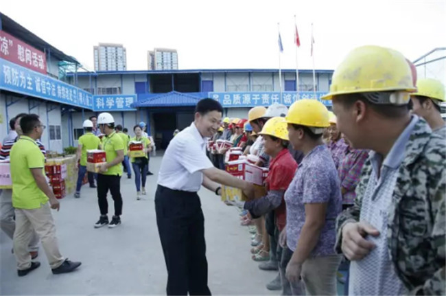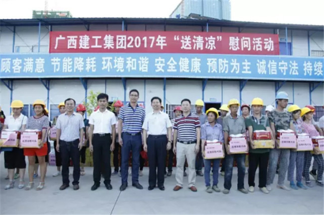 柳州市高新區(qū)科技園專家公寓樓工程由我司桂華分公司承建。8月7日下午,廣西建工集團副總經(jīng)理侯立林冒著高溫酷暑,專程從南寧前來項目建設(shè)現(xiàn)場給一線職工和農(nóng)民工“送清涼”,公司領(lǐng)導歐志永、賴海標、廖立波參加活動。130多份價值9000多元的慰問品,在十多分鐘的時間里,全部發(fā)放完畢。